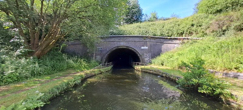 Zuerst haben wir uns an den Gosty Hill Tunnel gewagt. Er gehört zu der superengen Sorte. In Betrieb wurde er 1881 genommen. Wer ihn damals benutzen wollte, muss sich 'leggend' vorwärtsbewegen. Dabei legte sich die Crew auf ein Brett und bewegte das Boot mit den Füssen vorwärts. Das müssen wir heute zum Glück nicht mehr, aber dank unserem Elektroantrieb ist die Fahrt ruhig. Er ist nur 509 m lang, braucht aber eine Menge Konzentration. Geradeaus fahren in einem Tunnel ist immer ein Kampf mit der Wasserverdrängung.